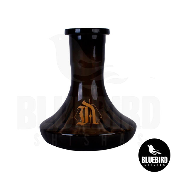 Base de cachimba robusta y compacta, con una altura de 19.5 cm y un notable grosor de 1 cm. Su diseño presenta una amplia base de 17 cm, equilibrada con una boca de 4.75 cm de diámetro.